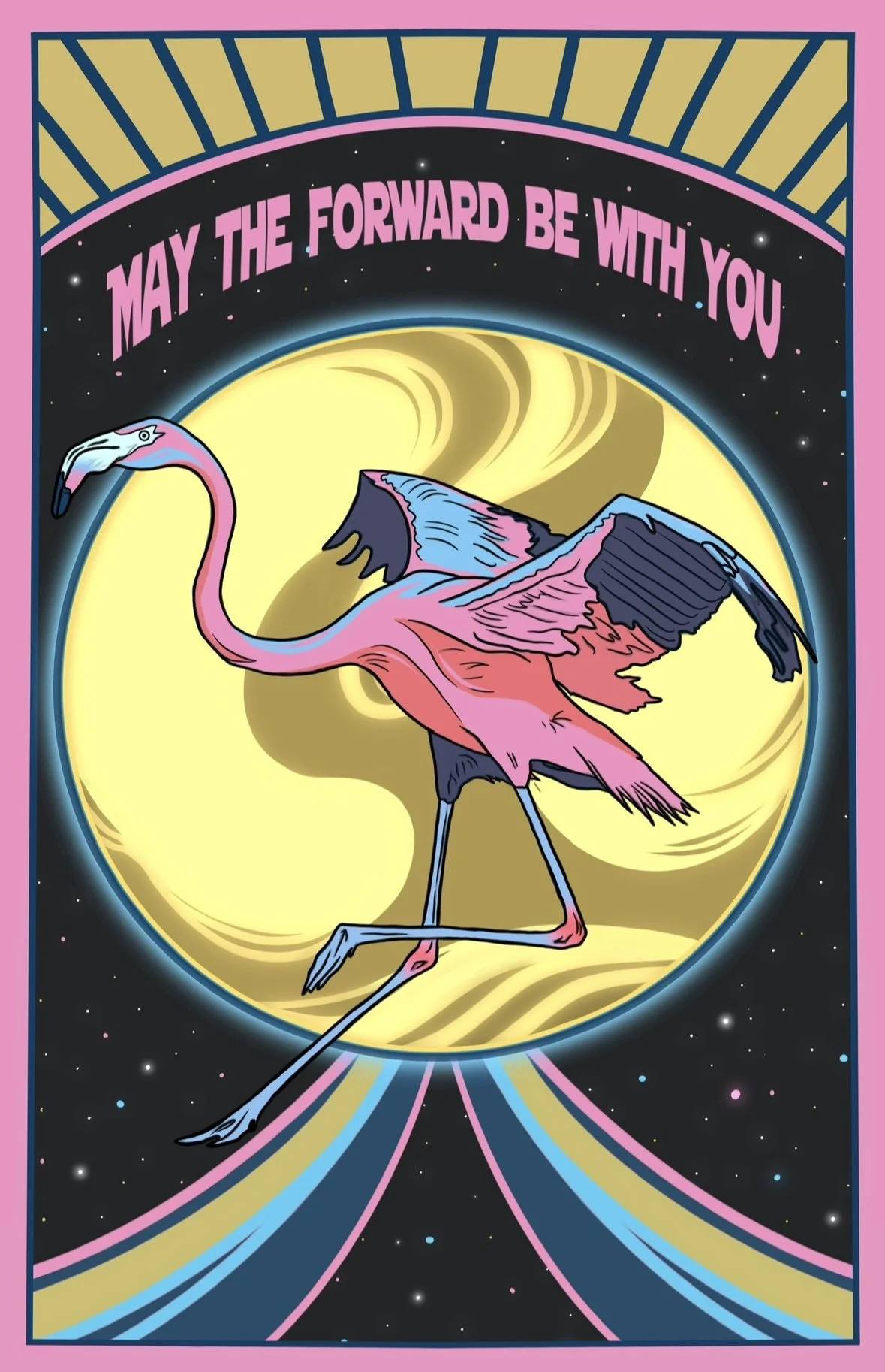 With artistic freedom encouraged, I chose to use Forward Madison’s signature colors of pink, light blue, navy blue, and gold as well as their symbol/mascot, the Flamingo (named Strut), to incorporate vibrancy as well as to compliment their aesthetic.
